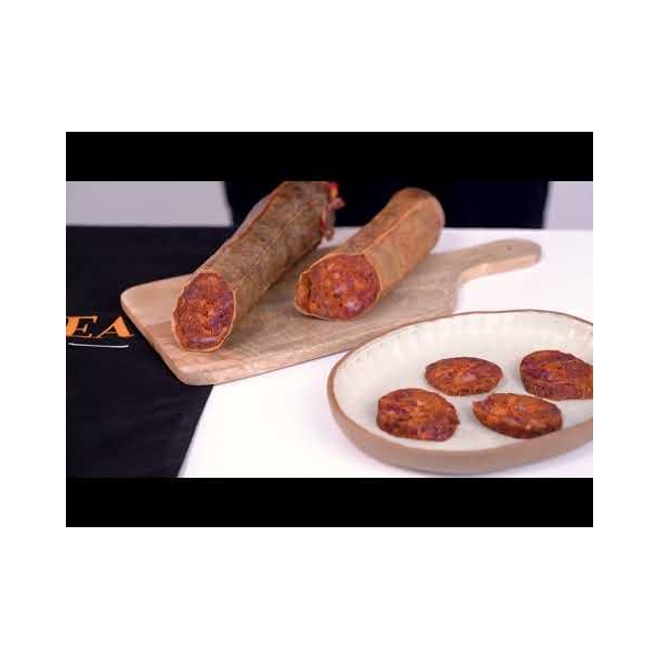 Les plus traditionnels de notre terroir, délicieu, saveur intense et juteuse Élaborée avec les meilleurs morceaux du porc de bellota moins gras, hachée et condimentée avec un seléction d'épices naturelles